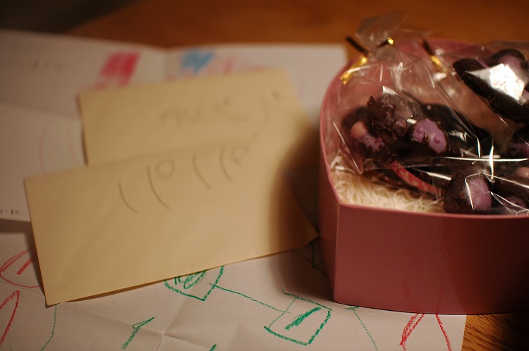 手書きの手紙と、手作りのチョコ、、いただきました。。